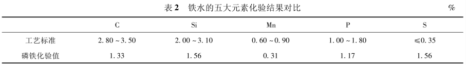 追根溯源,爐齡短是因為溫度高,溫度高是因為鐵水流動性差,因此對影響鐵水流動性的五大元素(CSiMnPS)進行分析,其化驗結果見表2。由表2可知,能提高鐵水流動性的磷元素含量并不低,而能降低流動性的硫元素含量則超出標準4.5倍。