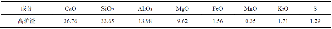 表2高爐渣成分