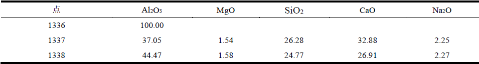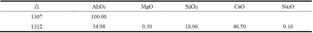 K0組成主要是剛玉和少量水泥。而高爐渣成分如前所述,除了少量Al2O3,主要是CaO、SiO2等,極易與坩堝中的Al2O3反應生成低熔點的CA2S甚至C2AS等。SEM照片中1312點EDS結果表明,該部位成分組成與C2AS接近,材料與滲透進來的熔渣發生了反應。