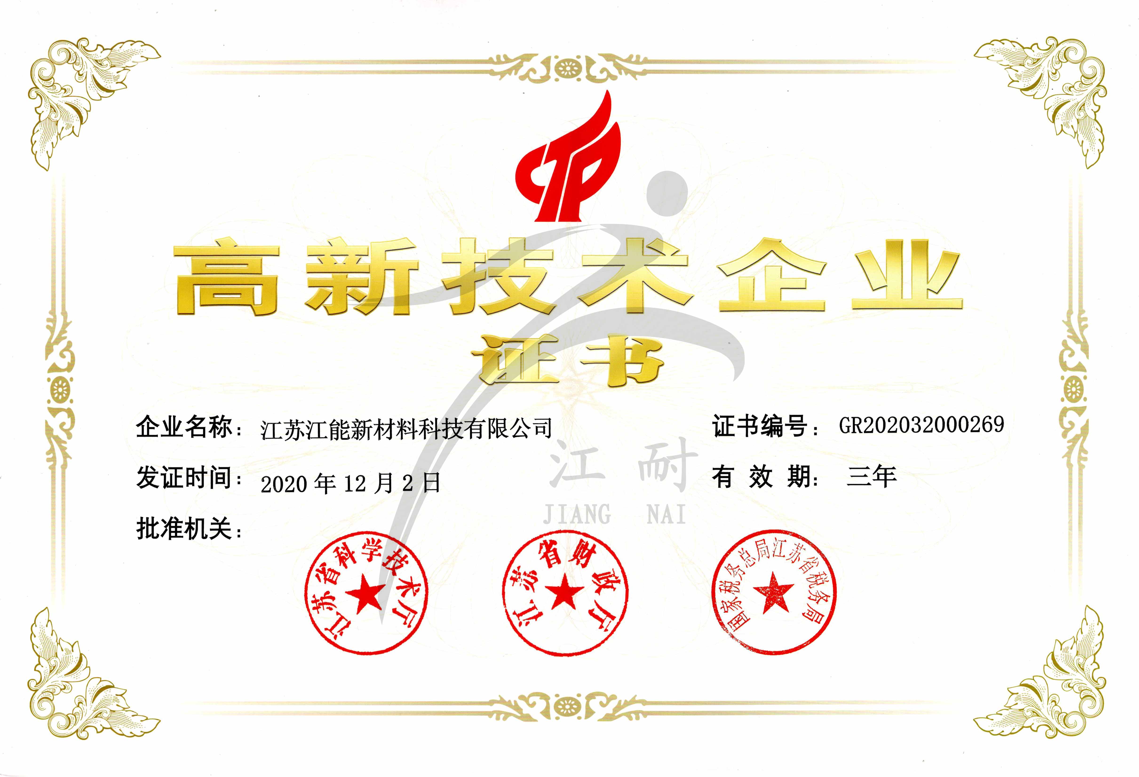 高新技術企業證書